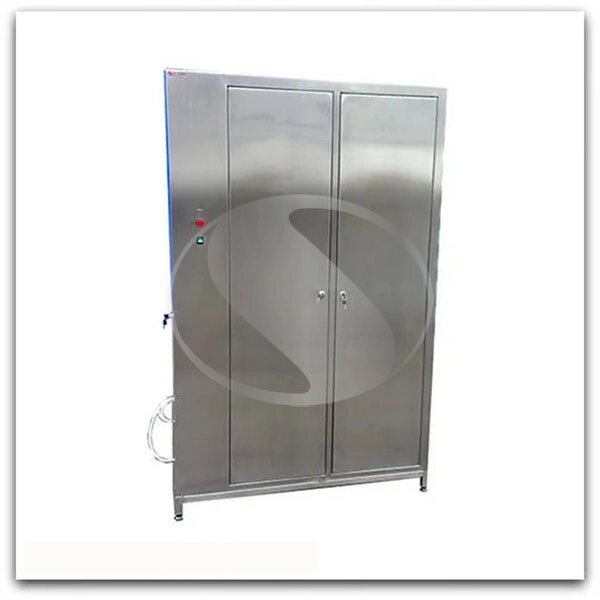 Сушильный шкаф для обуви и спецодежды из нержавейки. Сушильный шкаф для обуви и спецодежды, изготовляется из нержавеющей стали, что обеспечивает гигиеничность и надежность конструкции. Такие шкафы для гигиены обуви и спецодежды, оснащены нагревательным элементом и ультрафиолетовой лампой, что позволяет сушить одежду и обувь обеззараженным воздухом. Воздух подается через специальные отверстия в трубах, которые находиться внутри шкафа. Сушильный шкаф может быть, различных вариантов: шкаф для сушки на 10/20/30/60 пар обуви, без одежды, шкаф для сушки на 15/25/45 секций одежды.