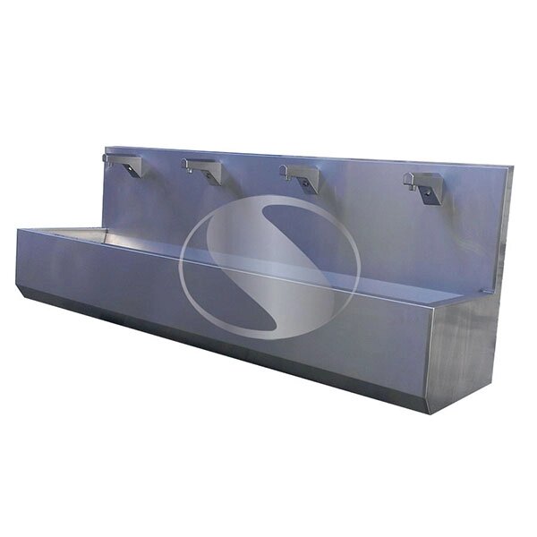 Умывальник бесконтактный на четыре секции для производства Умывальник бесконтактный на четыре секции – изготовлен из пищевой нержавеющей стали, марки AISI-316/304. Бесконтактный умывальник на четыре поста, марки-УБ4, применяется на производстве для пищевой промышленности. Принцип работы бесконтактной мойки на четыре секции: включение и подача воды происходит с помощью сенсорных датчиков, которые находятся под лейкой мойки. Возможно конструкция сенсорного умывальника на четыре секции с ножками и без, по желанию клиента. Промышленный умывальник бесконтактный на четыре секции Бесконтактная мойка на четыре секции, может устанавливаться в любых промышленных помещениях, открытого и закрытого типа, главная необходимость, это подвод электричества на 220Вт или 24Вт для безопасности. В основном сенсорные мойки, такого типа, на две, три, четыре секции используются на различных предприятиях, связанных с пищевой отраслью: мясо-комбинаты, птицефабрики, молочные комбинаты и тд. Особенность сенсорного умывальника, заключается в том, что для мойки рук не нужно прикасаться к кранам мойки для регулировки воды. Многосекционные мойки, оснащены специальными автоматическими смесителями для подачи воды. Подаётся вода к смесителю, выставляется нужная температура, после уже выходит смешанная вода, нужной температуры. Для подключения умывальника на четыре секции, необходимо подвести электричество 220Вт или 24Вт. постоянного тока. Наше предприятие ООО “Спектрум сталь” в городе Киеве, изготавливает сенсорные, бесконтактные умывальники на одну, две, три секции, настенные, напольные, медицинские мойки, ванны из нержавейки с гарантией и доставкой по всем регионам Украины.